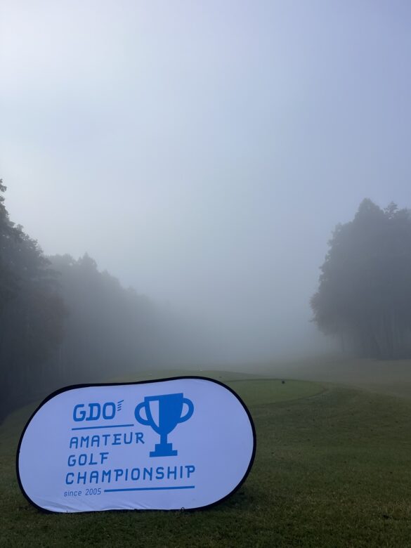11月10日 PGM石岡ゴルフクラブ(茨城)GDOシングルスチャンピオン シングルス東日本決勝 スタート時間にも濃霧。そりゃ凄い霧で、50Y先のバンカーが見えない程。スタートホールで左方向に打ったけど、せいぜい左ラフだろうと思ってたのですが距離もなにもわからず、行ってみたらボールが見つからず痛恨のロストに→結局トリスタート。次もボギーでしょんぼりしていたら「あまりに霧がひどくてスタート時間による不公平がありすぎるため、前半のハーフはノーカウントとします」という連絡が。ラッキー♪