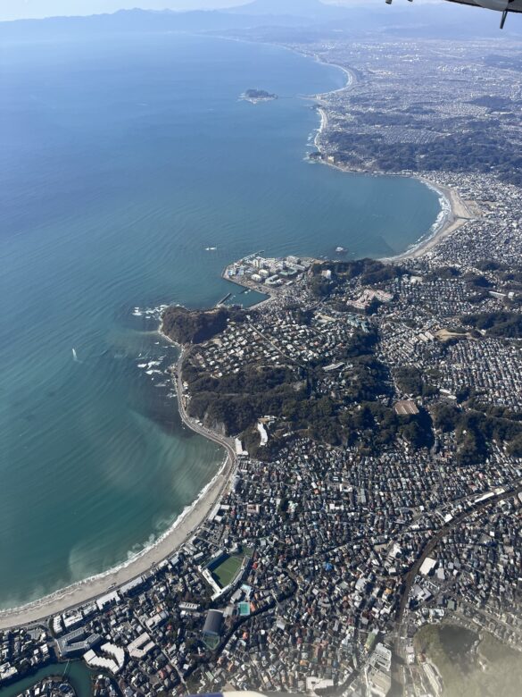 私を載せた小型機は定刻通り、そして今回も右側のプロペラから回りながら動き始め、相変わらずすごい加速で三宅島を飛び立ったのでした。強風にあおられ、ふわっふわっと左右に傾くたびに壁と椅子を強くつかんで体を支えながら「ああ~私のせい?バランスとりづらいよね?」「ごめんなさーい!」と心の中で謝りながら「お願い!パイロットの人、プロでしょ?頑張って!」とパイロットさんを鼓舞するのでした。