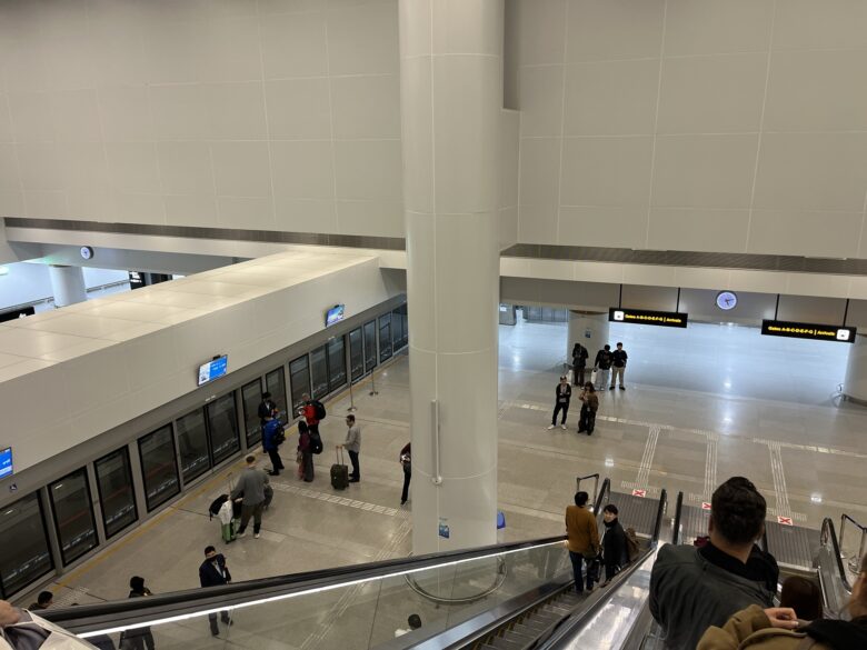 ああ・・良かった!!10回くらい「コップンカー」って言いまくり、CAさんもニコニコと解放してくれました。お陰でボーっとしてたのが目が覚めましたよ。はー。よろよろと新しい廊下を歩くと長いエスカレーターが。ナニコレ?と思ったらスワンナプーム空港にできた新しいSターミナル。ここからメインターミナルにはシャトル列車で行くようです。ピッカピカのホームに並んで、ゆりかもめ的なシャトル(椅子は端っこにあるだけ。基本立って乗る)に乗り込むとあっという間に加速します。