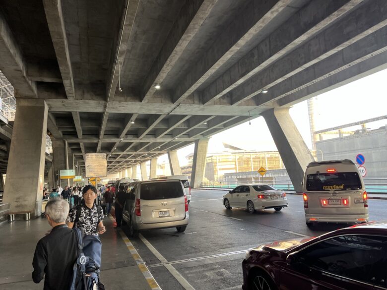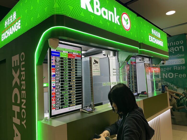 シャトルを降りてエスカレーターを上るとそこはイミグレ(入国管理)。結構混んでます。今、タイは事前にTDAC(Thailand Digital Arrival Card)というオンラインの入国手続きをしておき、その画面を入国時に提示するシステムに。もう全員がスマホ持ってる、っていう前提なんですね。まあ、何とかクリアして入国します。待ち合わせ場所のローソン前に井上コーチが待っててくれました。Hさんを待って一緒に地下の両替所に。そこは去年荷物を預けた経験もあり勝手知ったる空港の地下なのです。この日のレートは 1THB=5.03円。ちなみに羽田空港は 1THB=5.47円だったので、34000円を両替したところ6749バーツでしたが、羽田だったら6215バーツ。500バーツ以上違います。やっぱり「どこで両替するか?」って大事だなあって改めて実感。